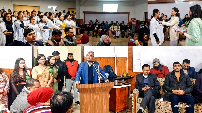 वीरगञ्ज माघ ० ७ । वीरगञ्जस्थित नेशनल मेडिकल कलेज तथा शिक्षण अस्पतालमा नयाँ शैक्षिक सत्रमा भर्ना भएका चिकित्सा शिक्षाका नयाँ विद्यार्थीहरुको स्वागत तथा अभिमुखकरण कार्यक्रम सम्पन्न भएको छ ।