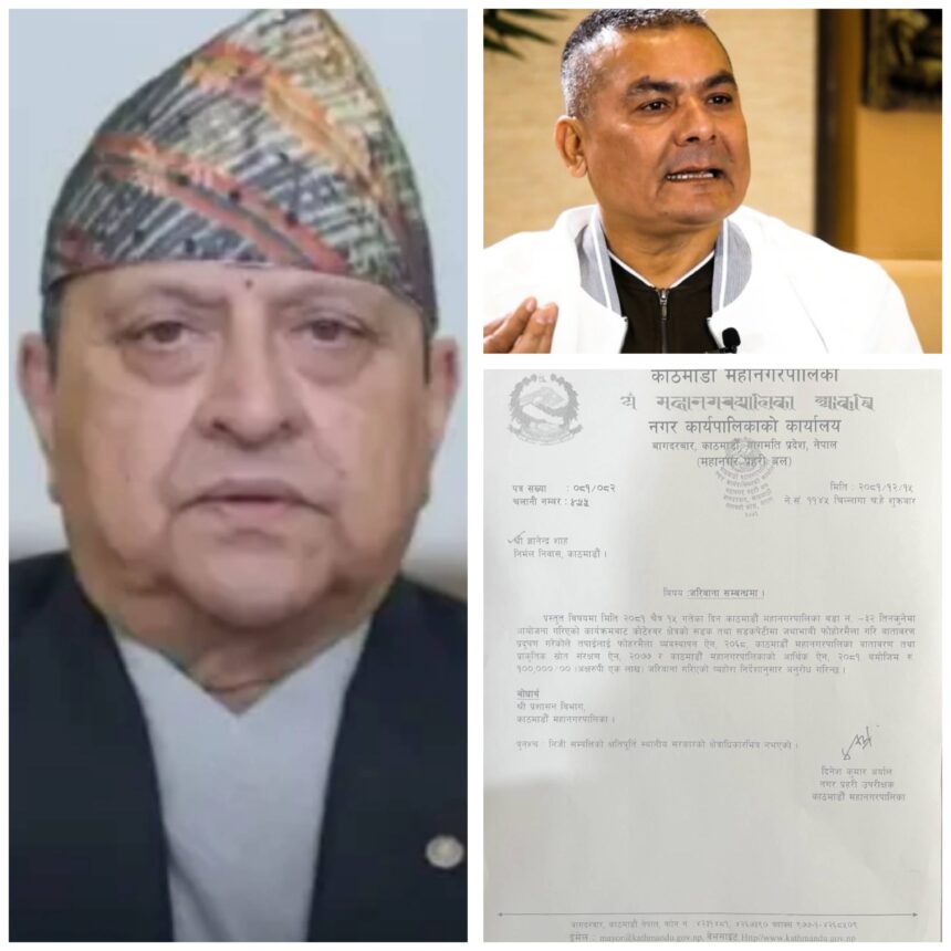 काठमाडौं,चैत १६ । शुक्रबार: काठमाडौं महानगरपालिकाले तीनकुने, कोटेश्वर र नरेफाँट क्षेत्रमा राजावादी आन्दोलनका क्रममा भएको तोडफोड र विध्वंसको क्षतिपूर्ति र सडकलाई फोहर गरेको आरोपमा पूर्वराजा ज्ञानेन्द्र शाहसहितका व्यक्तिलाई ७ लाख ९३ जरिवाना तिराउने गरेको छ ।