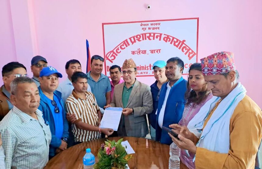 बारा चैत १८ । नेपाल पत्रकार महासंघ बारा शाखाले सोमबार बाराका प्रमुख जिल्ला अधिकारी वसन्त अधिकारीलाई ज्ञापनपत्र बुझाएको छ।