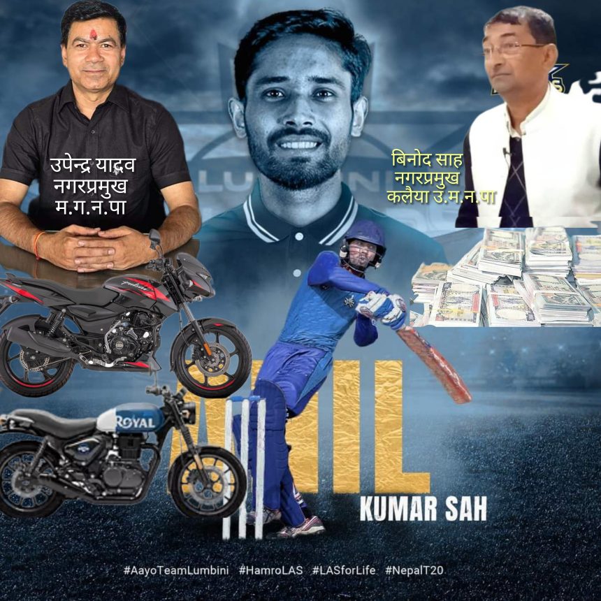 त्यस्तै कलैया उपमहानगरपालिकाका नगरप्रमुख विनोद साहले प्रत्येक रनमा एक हजार प्रत्येक बाउन्ड्री हिटको लागि पाँच हजार ,प्रत्येक छक्काको लागि आठ हजार ,थप अर्धशतक बनाउनको लागि पचीस हजार र शतक प्रहार गरेबापत एकावन हजार दिने घोषणा गरेको बताउनु भयो ।