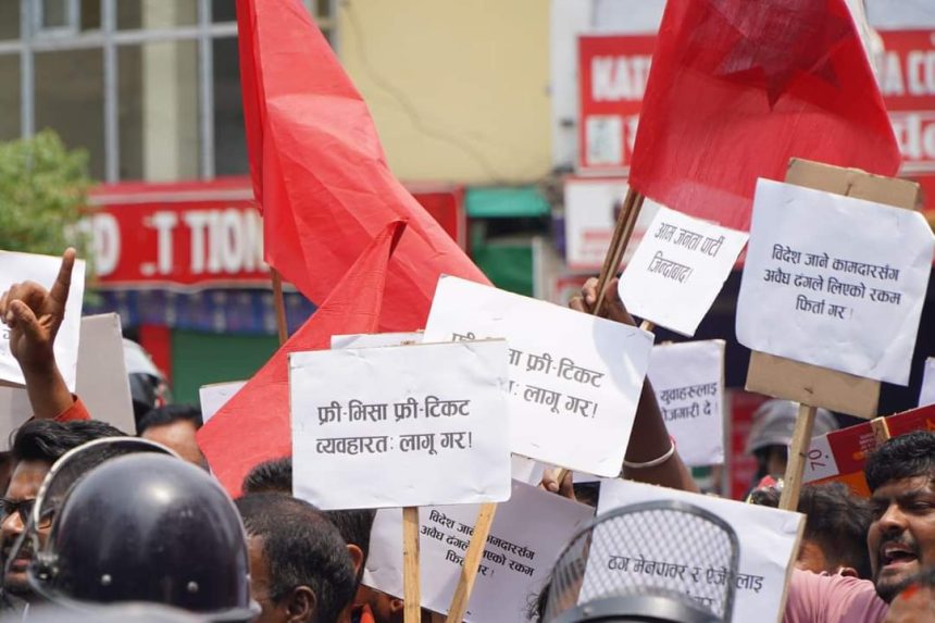 पढ्दै : वैदेशिक रोजगारमा गएका श्रमिकहरुसँग लिइएको अवैध रकम फिर्ता गर्नुपर्ने माग गर्दै आजपाले वैदेशिक रोजगार विभाग घेराउ